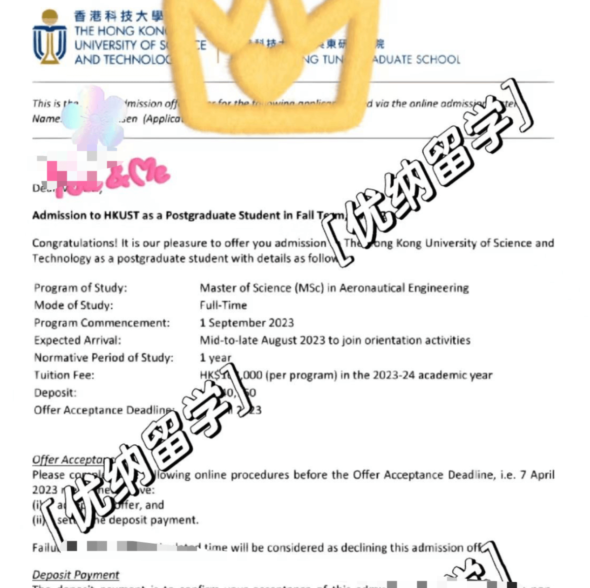 录取院校:香港科技大学The Hong Kong University of Science and Technology(航空工程硕士MSc Aeronautical Engineering)