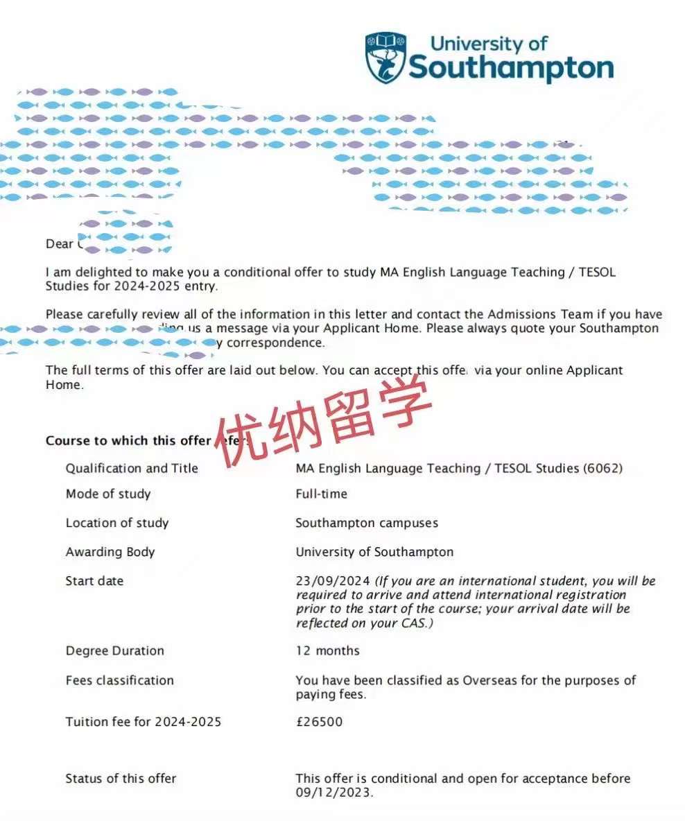 -Offer:南安普顿大学 English Language Teaching/TESOL Studies