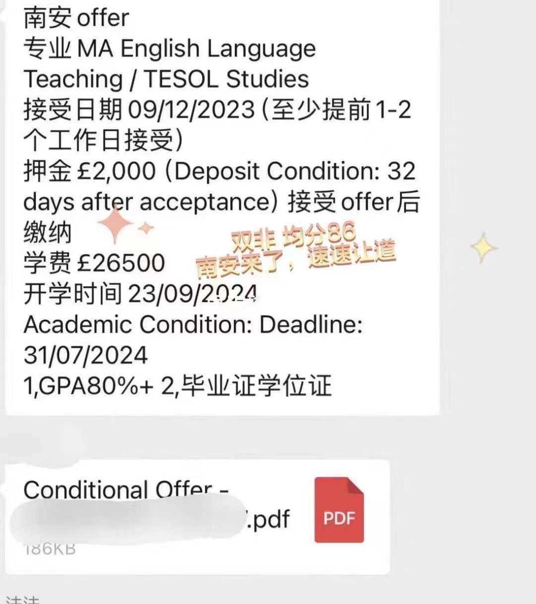 ?暑假期间文书全部完成,9月中旬一开放就立刻提交了申请,11月9日第一封南安的offer就到啦!恭喜亲爱的学生!